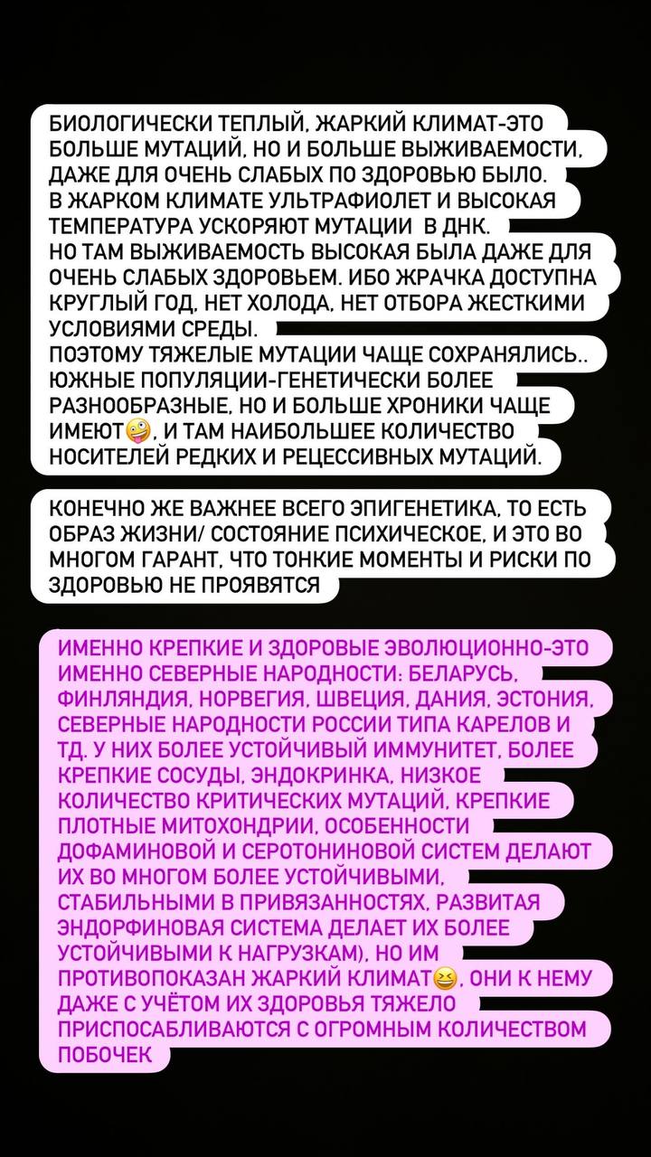 Биологически теплый, жаркий климат — больше мутаций. Там выживаемость была высокой даже для очень слабых здоровьем. Еда доступна круглый год, нет холода, нет жесткого отбора. Поэтому тяжелые мутации чаще сохранялись.