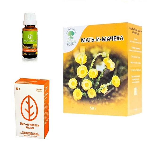 Мать-и-мачеха ценится как растение, помогающее при заболеваниях верхних и нижних дыхательных путей, что нашло отражение в латинском названии травы (Tussilago — происходит от существительного «кашель» (tussis) и глагола «прогонять», «изгонять»). Благодаря содержанию в листьях значительного количества слизи мать-и-мачеха оказывает обволакивающее действие на слизистые оболочки полости рта, горла и гортани, защищая их от раздражения. Кроме того, слизи, сапонины и органические кислоты размягчают и разжижают сухое отделяемое в верхних дыхательных путях, восстанавливают естественное движение реснитчатого эпителия в трахее и бронхах, способствуют более быстрой эвакуации продуктов воспаления и значительно улучшают отхаркивание мокроты.