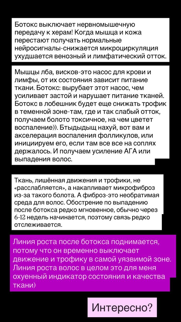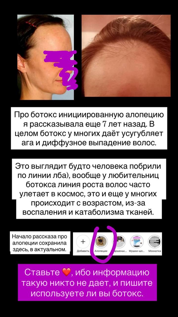 Про ботокс-инициированную алопецию я рассказывала еще 7 лет назад. В целом ботокс у многих усугубляет АГА и диффузное выпадение волос.