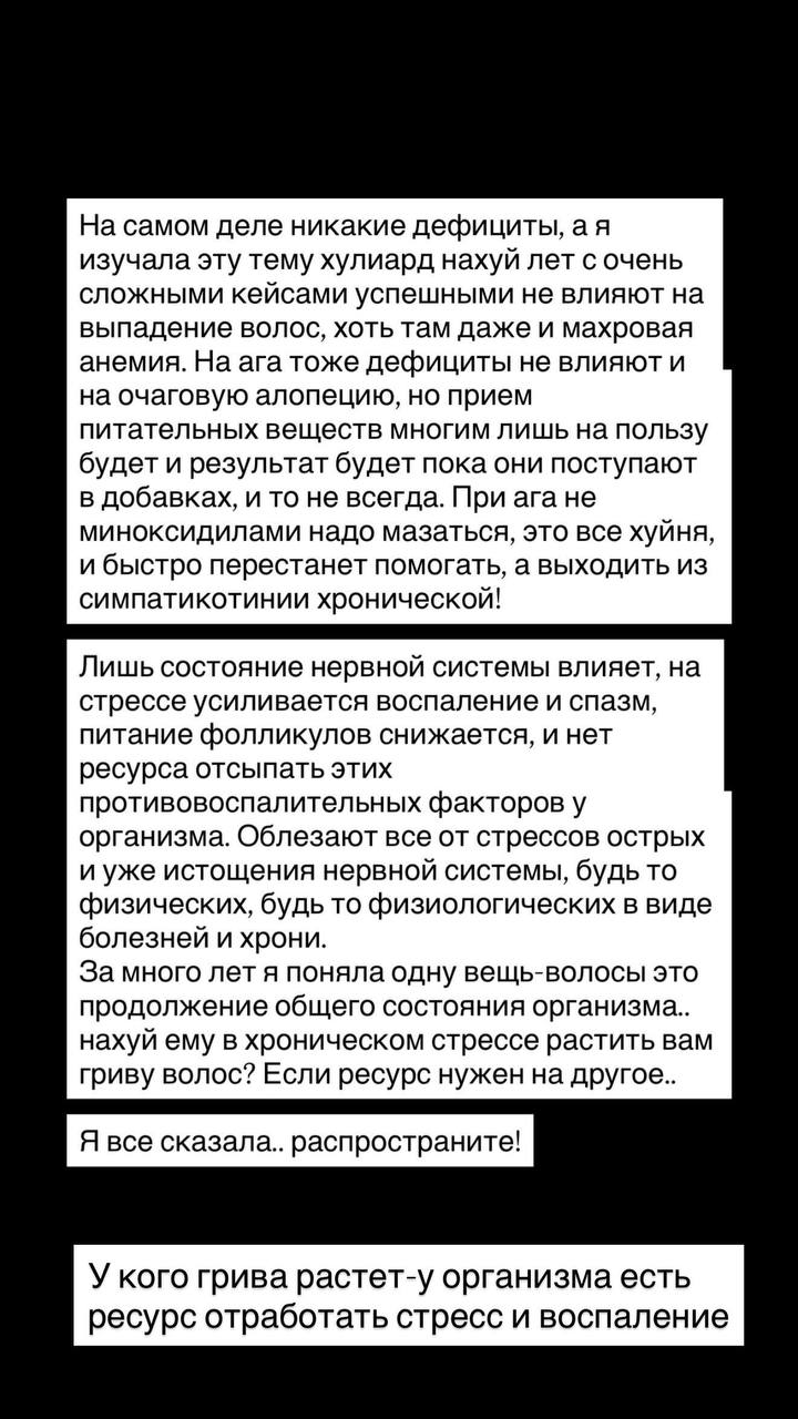 За много лет поняла одну вещь: волосы — это отражение общего состояния организма… Зачем ему в хроническом стрессе растить вам гриву волос, если ресурс нужен на другое?.. У кого грива растет — у организма есть ресурс отработать стресс и воспаление.