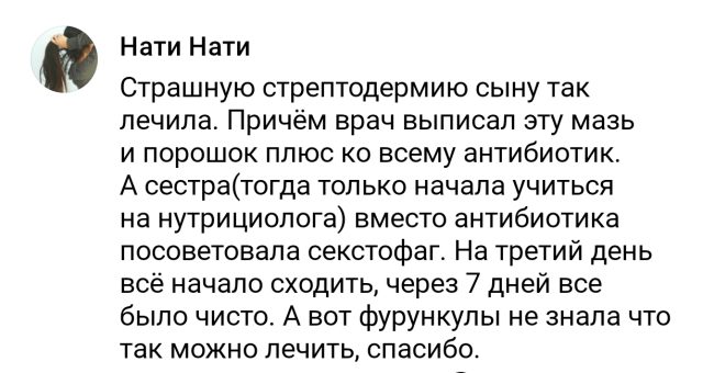 Секстафаг хорошо вымочить в растворе ватку и сделать на прыщ компресс на 30−60 минут. Также принимать внутрь по инструкции 2−3 раза в день. Ихтиоловая мазь нанести толстым слоем на пораженные места сразу после снятия компресса, сверху заклеить пластырем или закрыть пищевой пленкой, оставить минимум на 8−10 часов, оптимально — на ночь. порошок Банеоцин можно смешать с ихтиоловой мазью в пропорции 1 к 1. Но если нет денег, можно ограничиться только ихтиолом. Проводить манипуляции до тех пор, пока не сойдет воспаление. Диету на момент лечения держать строгую: никаких сладостей, мучного, молочного. Максимально сократить белок. Оптимально овощное питание хотя бы на пару дней. - 02При множественных фурункулахПри множественных фурункулах работает старая добрая аутогемотерапия (методика лечения, при которой вам подкожно или внутримышечно вводят собственную кровь).