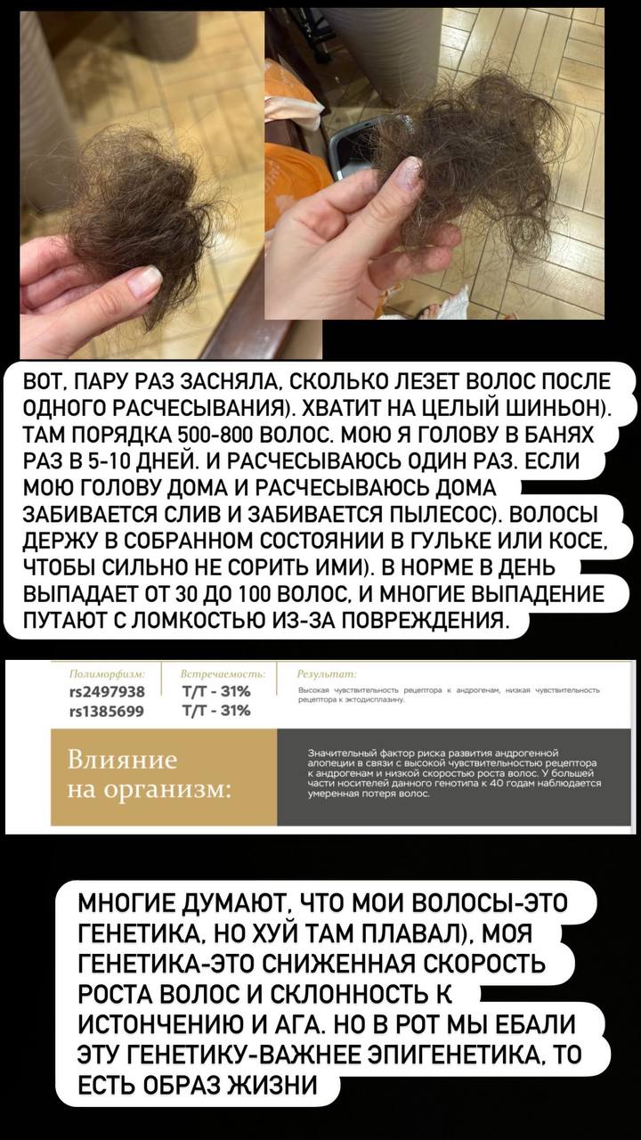 Многие думают, что мои волосы — это генетика. Но нет! Моя генетика — это сниженная скорость роста волос и склонность к истончению и АГА (андрогенетической алопеции). Но как известно, важнее эпигенетика, то есть образ жизни.
