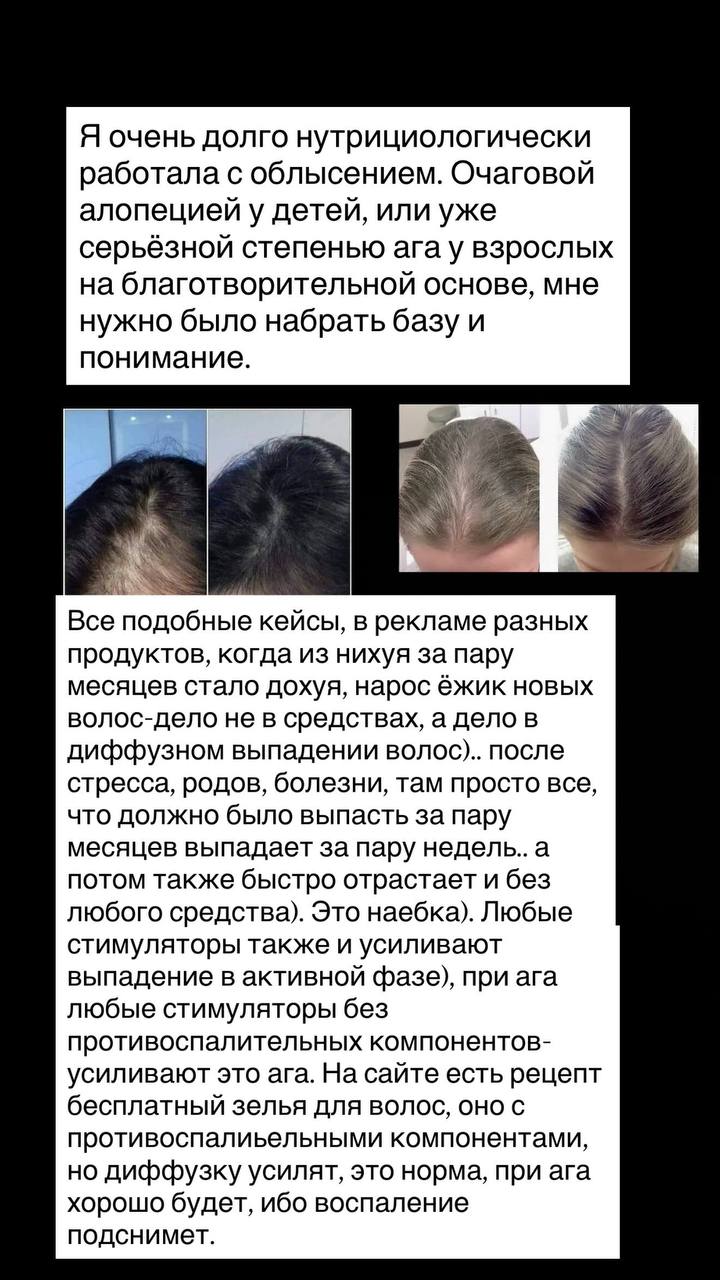 Я очень долго нутрициологически работала с облысением — очаговой алопецией у детей или уже серьёзной степенью АГА у взрослых на благотворительной основе — мне нужно было набрать базу и понимание.