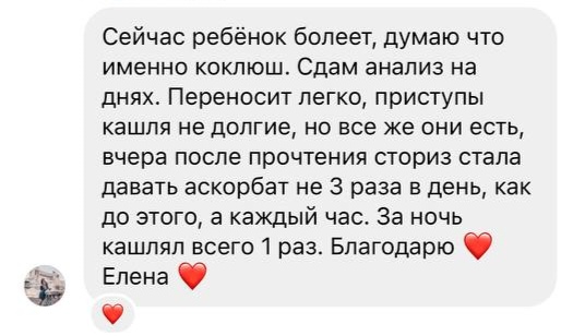 Для лечения коклюша необходима особая форма витамина С — аскорбат натрия (Sodium Ascorbate). Ни в коем случае не Ester-C (аскорбат кальция, calcium ascorbate). Брать в порошке. Аскорбат натрия есть на маркетплейсах, iHerb. Пищевой — тоже подойдёт. Сырье дешевое.