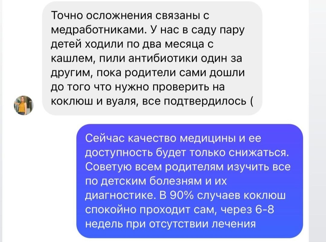 Увеличение заболеваемости коклюшем связано прежде всего со снижение компетентности медицинского персонала. Лечат коклюш как бронхит, без осмотра и анализов, при этом не ограничивая больного в общении с окружающим миром, не изолируя его.