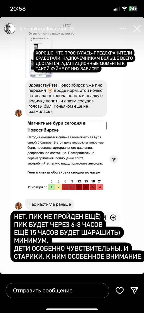 У многих, кто сейчас находится в Москве, а также других городах России и Украины, где идут атаки беспилотников, адаптационные механизмы нарушены глушилками. Электромагнитный фон и так постоянно повышен, а сейчас еще стихийные факторы добивают.
