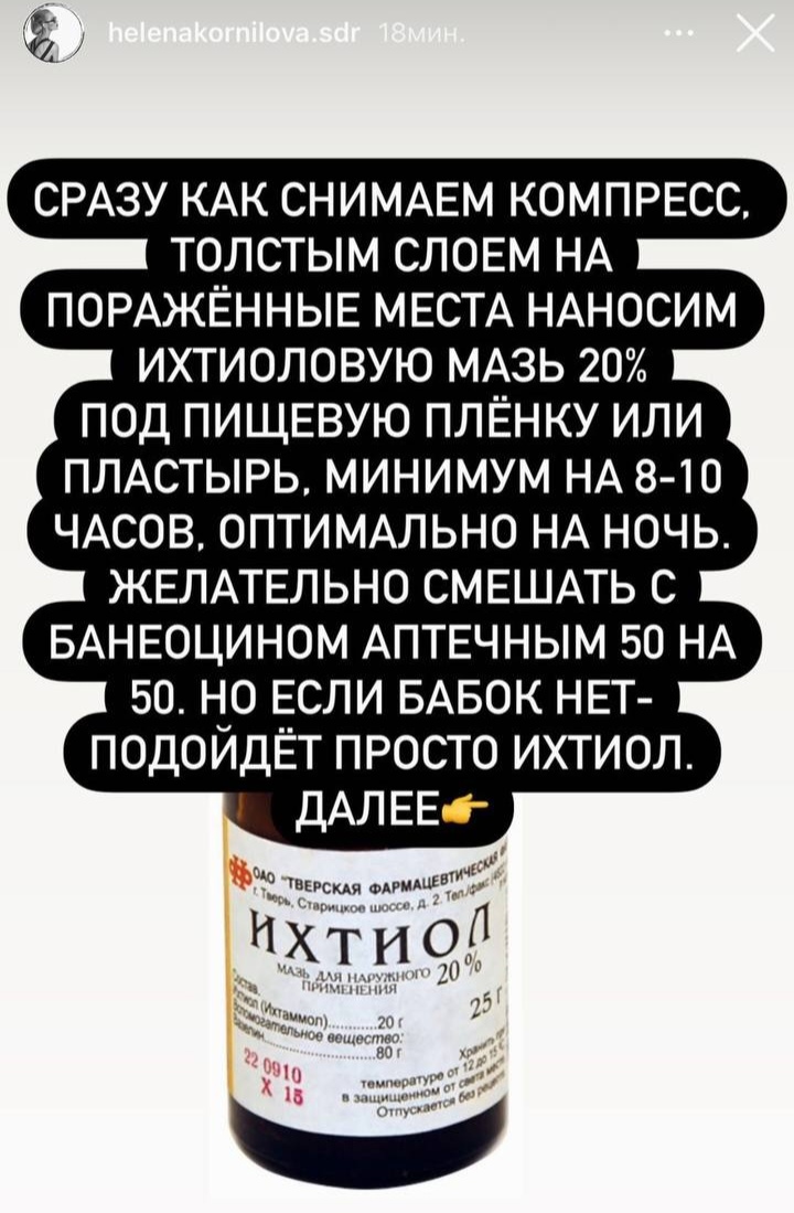 Секстафаг хорошо вымочить в растворе ватку и сделать на прыщ компресс на 30−60 минут. Также принимать внутрь по инструкции 2−3 раза в день. Ихтиоловая мазь нанести толстым слоем на пораженные места сразу после снятия компресса, сверху заклеить пластырем или закрыть пищевой пленкой, оставить минимум на 8−10 часов, оптимально — на ночь. порошок Банеоцин можно смешать с ихтиоловой мазью в пропорции 1 к 1. Но если нет денег, можно ограничиться только ихтиолом. Проводить манипуляции до тех пор, пока не сойдет воспаление. Диету на момент лечения держать строгую: никаких сладостей, мучного, молочного. Максимально сократить белок. Оптимально овощное питание хотя бы на пару дней. - 02При множественных фурункулахПри множественных фурункулах работает старая добрая аутогемотерапия (методика лечения, при которой вам подкожно или внутримышечно вводят собственную кровь).